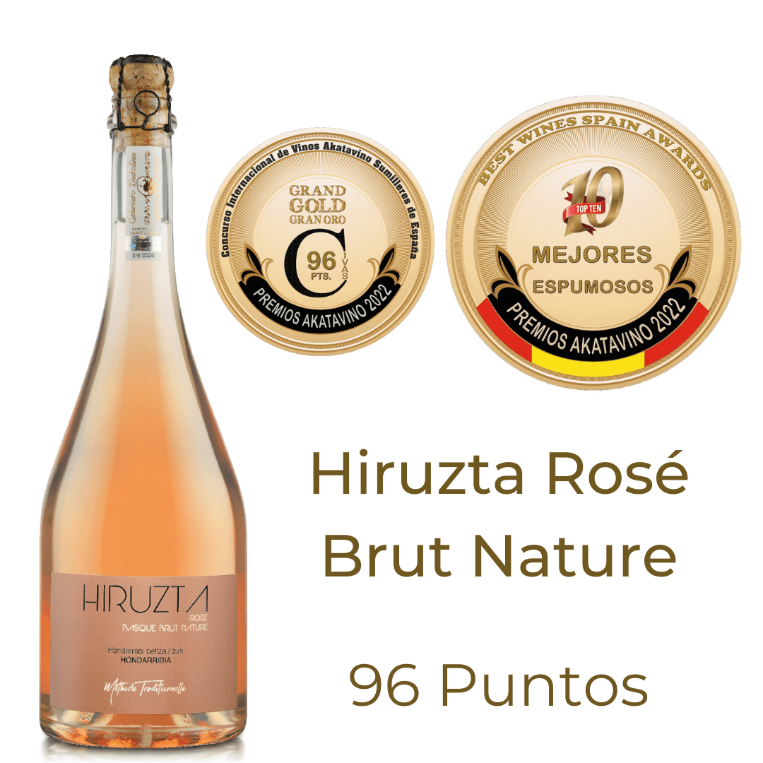 Destaca HIRUZTA ROSÉ BASQUE BRUT NATURE, el espumoso rosado de la bodega y de edición limitada que ha recibido el máximo reconocimiento con una medalla CIVAS GRAN ORO con 96 puntos. Además entra en el top 10 de los mejores espumosos de España ocupando la 2ª posición en el ranking.