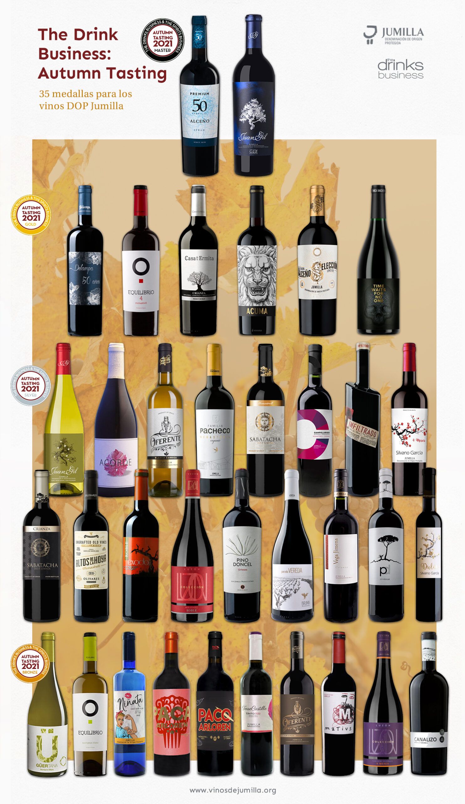 Un año más la DOP Jumilla es galardonada en las catas  a ciegas de otoño de la publicación The Drink Business. En este caso, 35 vinos enviados han recibido distinción, sobresaliendo dos medallas Máster, la máxima puntuación que  se otorgaba en este concurso a los vinos Alceño Premium 50 barricas de Bodegas  Alceño y Juan Gil azul de Bodegas Juan Gil.
