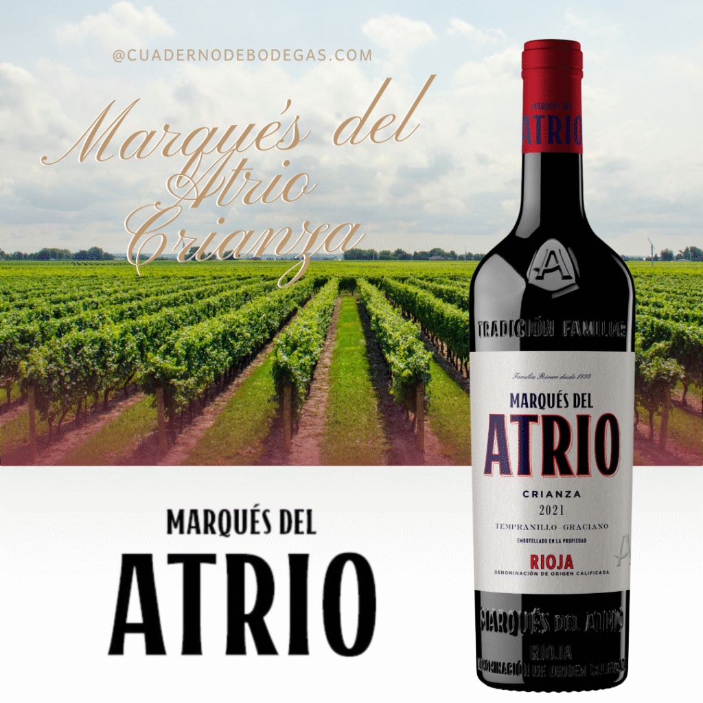 Nacido en los viñedos de Mendavia, situados entre 300 y 600 metros de altitud, Marqués del Atrio Crianza es fruto de un terroir privilegiado. Elaborado con una cuidada vinificación que combina selección de uva, maceración prolongada y crianza en barricas de roble francés durante 12 a 14 meses, este vino refleja la pasión de la 5ª generación de la familia Rivero, Manuel y Jorge Rivero, por elaborar un rioja con la nobleza habitual de la DO. pero que realmente difiere de los riojas tradicionales.