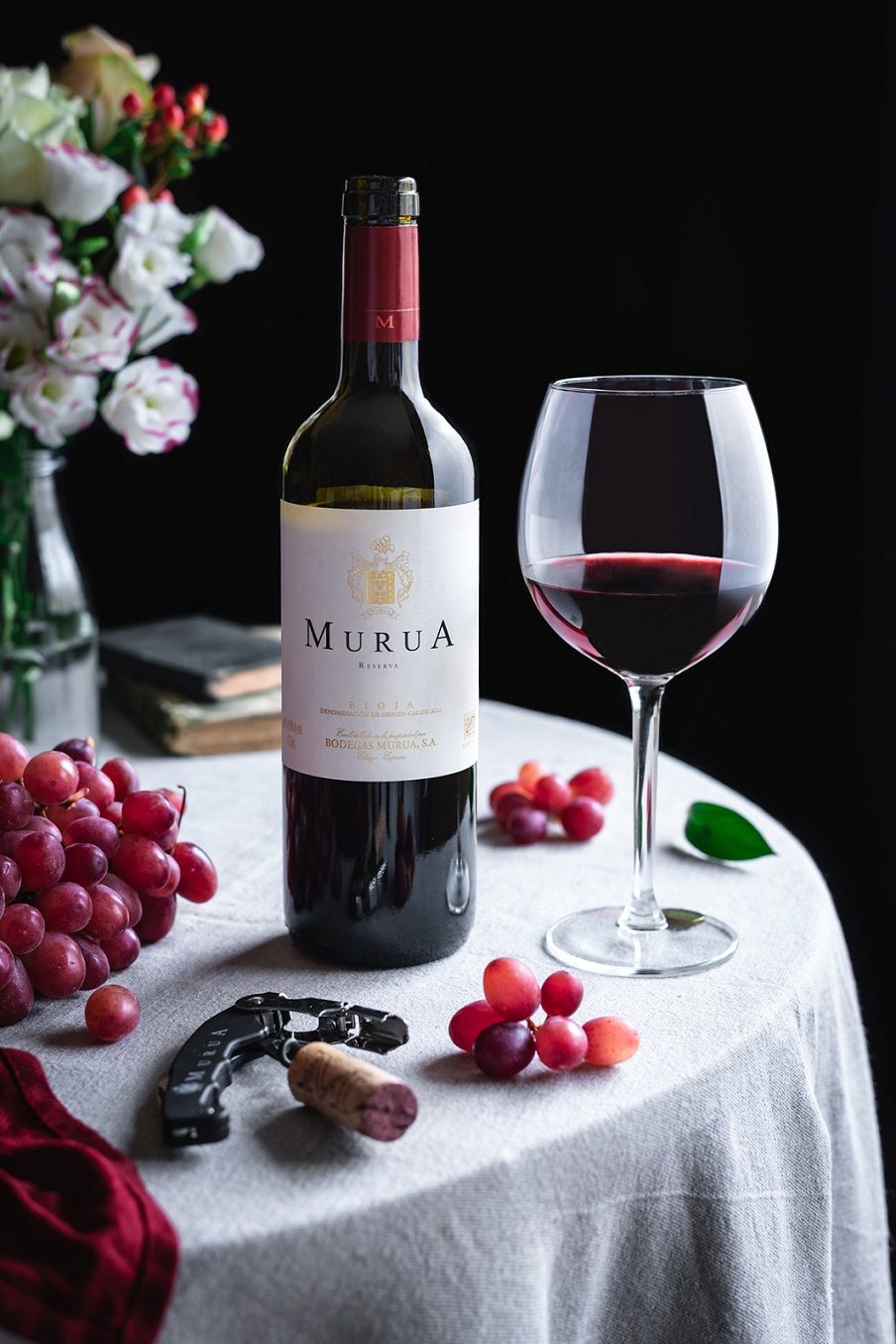 Murua Reserva es un tinto elaborado con uvas tempranillo (92%), graciano y mazuelo (8%), de gran versatilidad. Es un vino que ha permanecido durante 20 meses en barricas de roble francés y americano y cuatro años de crianza en botella en el calado subterráneo de la bodega para alcanzar su grado óptimo de madurez y redondez.