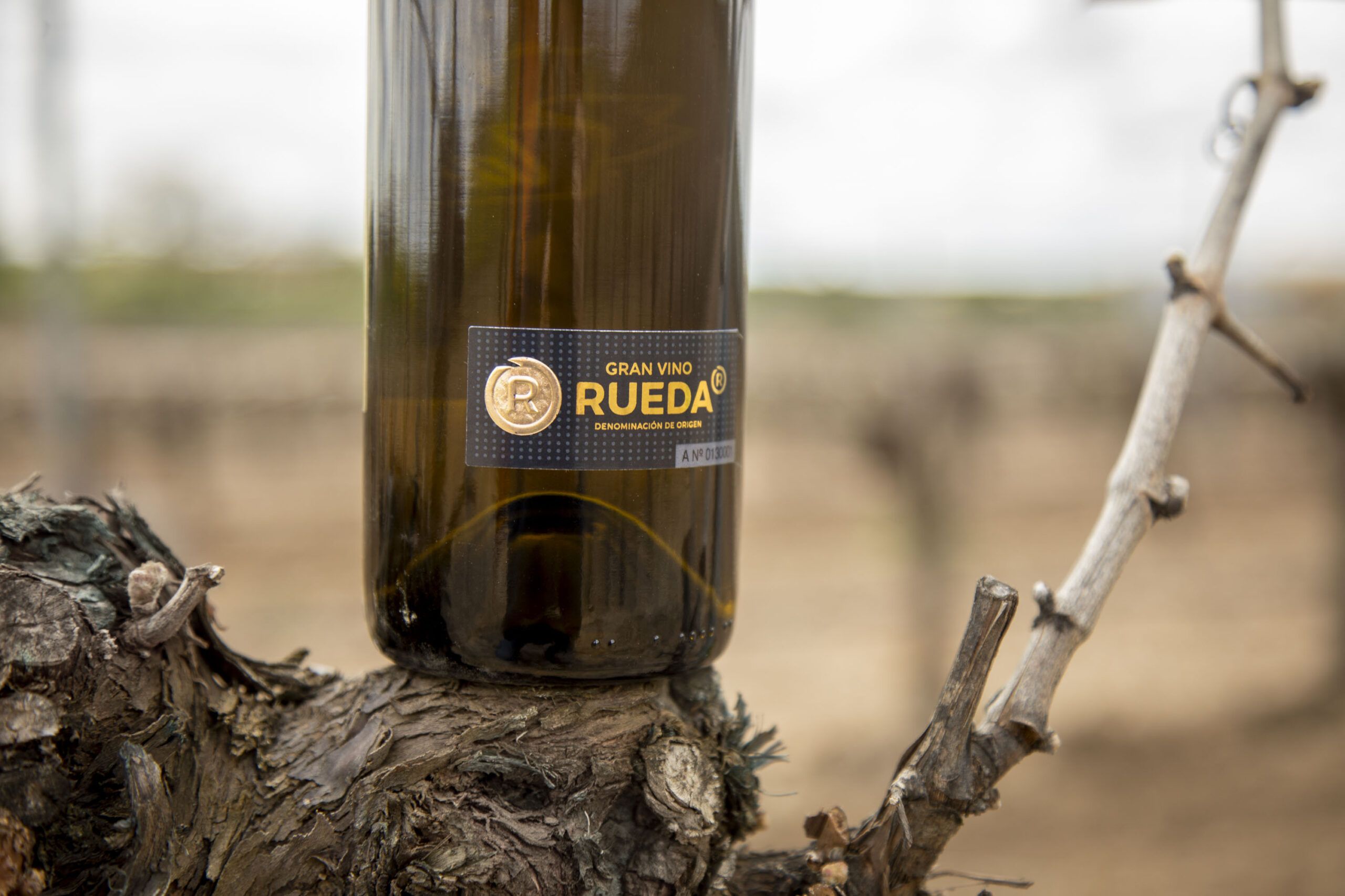 Para buscar la marca de distinción del Gran Vino de Rueda hay que ir a la parte de atrás de la botella, donde se encuentra una contraetiqueta muy especial. Se trata de un distintivo diseñado en tonos dorados y negro, colores que quieren transmitir elegancia y exclusividad. Esta contraetiqueta cuenta con una estampación diseñada específicamente para certificar la calidad del GVR y constatar su pertenencia a la Denominación de Origen Rueda.