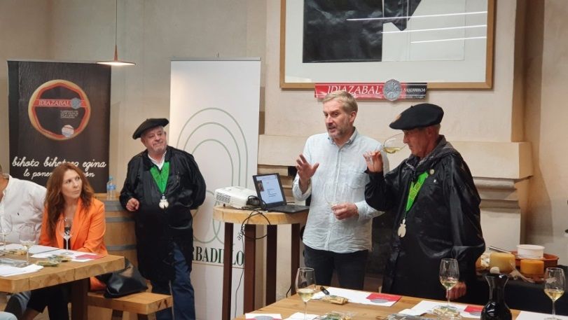 El espumoso Beta Sur fue el primero de los vinos en aparecer durante el aperitivo para ir abriendo boca. A partir de aquí hicieron acto de presencia los quesos de la D.O Idiazabal, elaborados todos con leche cruda de oveja de raza latxa.