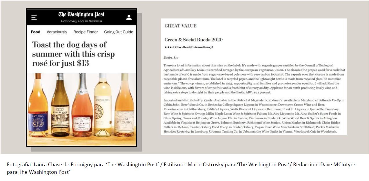 ‘The Washington Post’ apuesta por el verdejo Green & Social de Cuatro Rayas para refrescar los paladares de América